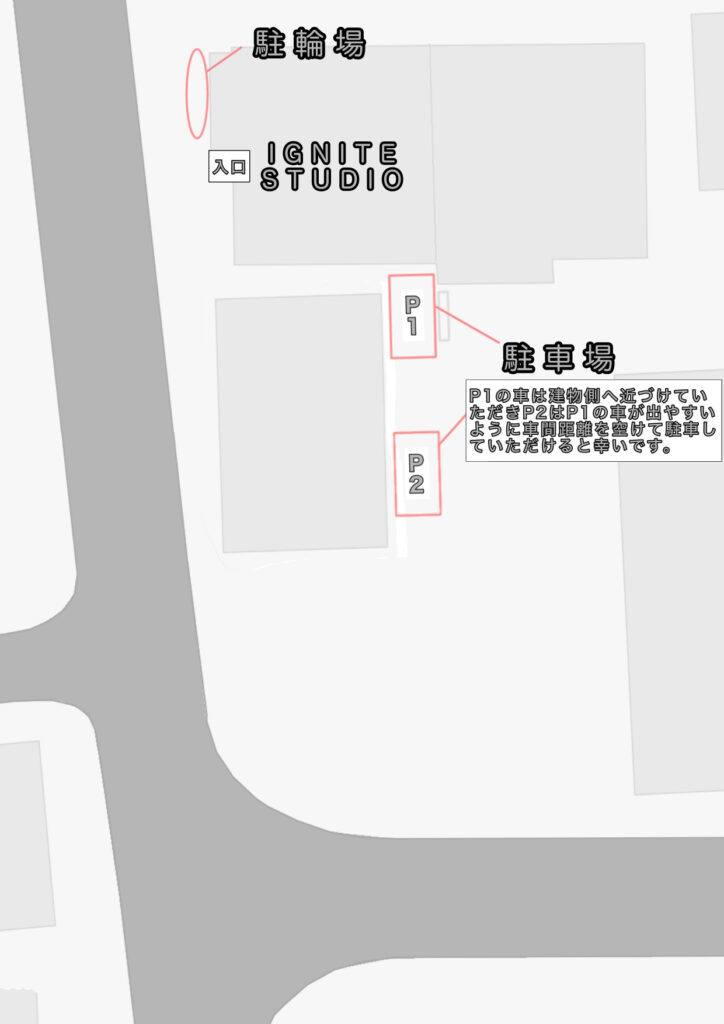 自転車・バイクでお越しの方は図のように寄せて止めて頂ければと思います。